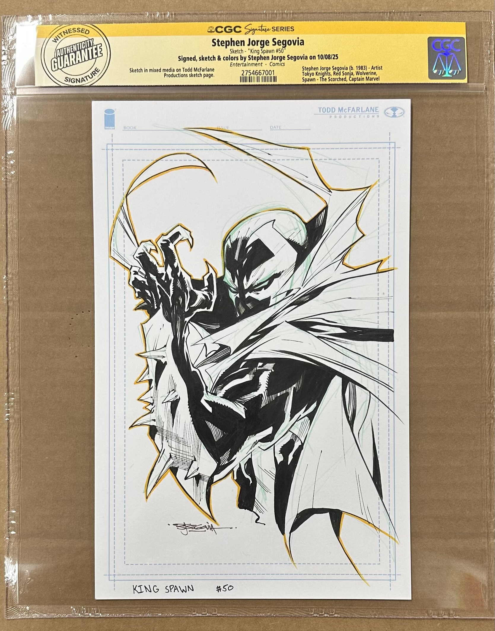 King Spawn #50 Stephen Segovia 1 in 1000 Original Sketch.