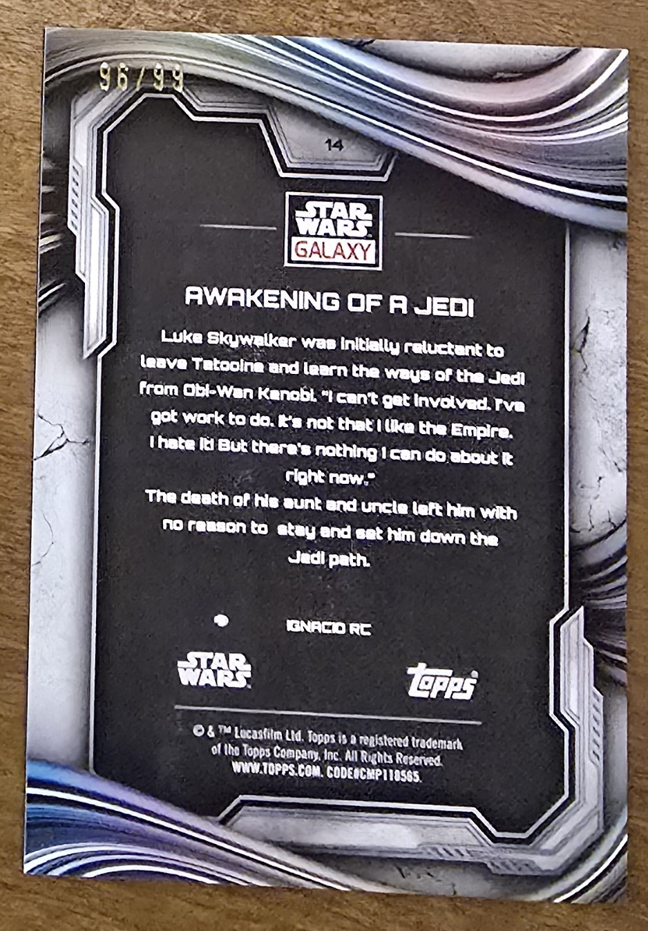 Star Wars Galaxy Chrome 2025 Topps base card #14 Awakening of a Jedi.